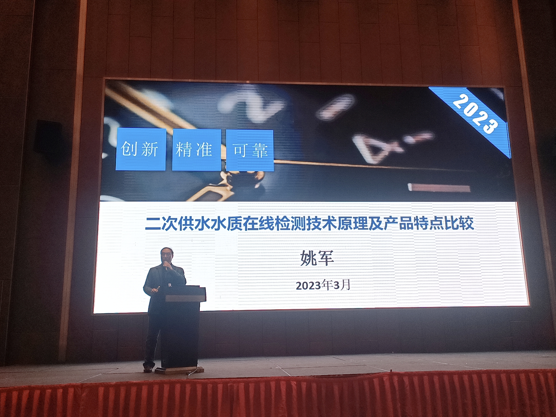 在此次宣貫會上,我司董事長、國內環境光學專家、浙江大學光電學院姚軍教授,同與會者分享了《二次供水水質在線檢測技術原理及產品特點比較》的報告。報告中介紹了二供水質濁度、消毒劑、色度、pH等在線檢測儀器的主要技術原理,光學檢測技術在二供水質在線檢測產品中的應用,并對二供在線水質檢測技術及產品特點進行了比較。報告獲得了與會者的好評及關注。