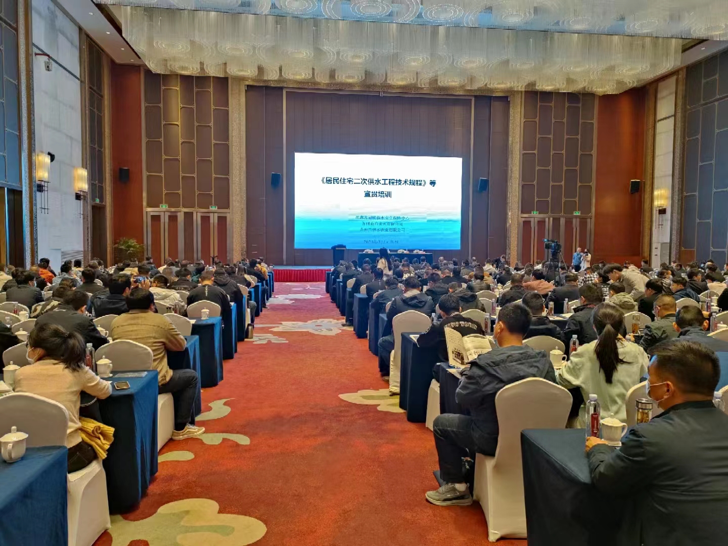 為科學指導江蘇省二次供水設施建設改造與運行管理,保障老百姓最后一公里水質安全,由江蘇省城鎮供水安全保障中心和蘇州市自來水有限公司牽頭編制的《居民住宅二次供水工程技術規程》(DB32/T 4284-2022),已于2022年6月13日正式發布,2022年12月1日正式實施。規程明確要求二次供水需安裝在線式水質檢測儀器。省城鎮供水安全保障中心于3月14日-17日在蘇州石湖金陵酒店舉辦標準的宣貫會。省內供水管理單位、設計單位、供水企業及相關設備制造供應商代表共700多人參加了此次大會。