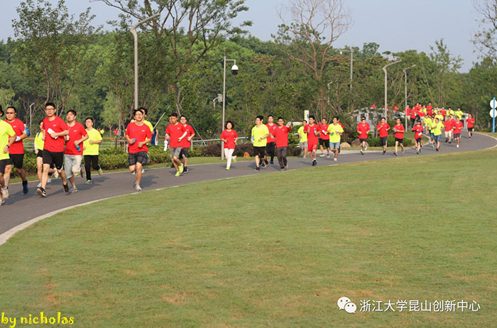 在浙江大學昆山創新中心成立六周年之際,創新中心于7月28日在昆山森林公園舉行員工跑步健走活動。本次活動的主題為“引領科技轉化,奔向智慧未來”。創新中心領軍人才、各部門、各孵化企業員工近300人參加了此次活動。