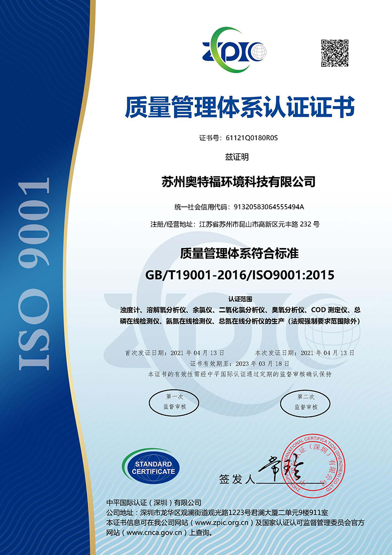 TM-6S濁度計正式獲得由昆山市市場監督管理局頒發的《中華人民共和國制造計量器具許可證》。